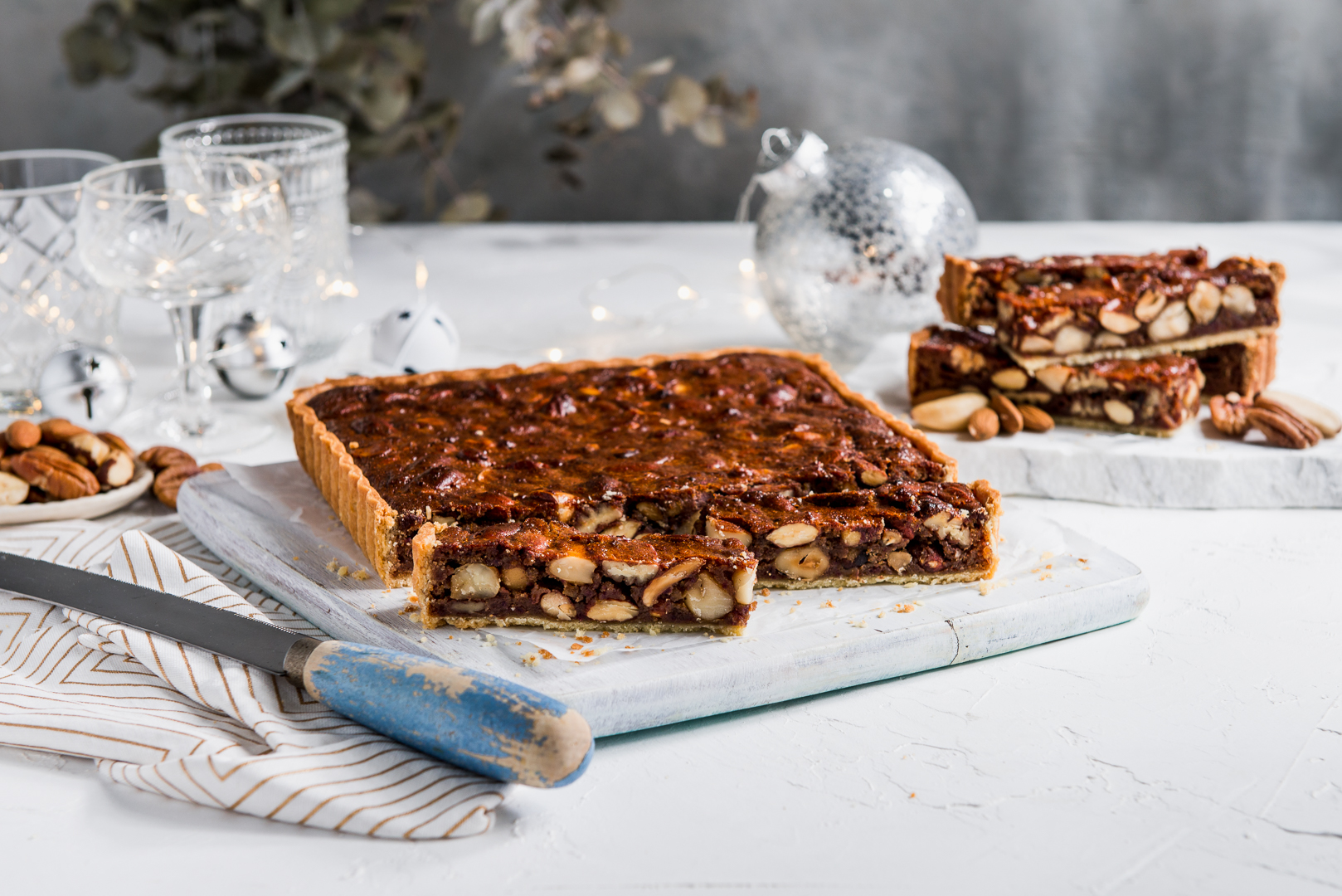 Follow our lead or use any combination of your favourite nuts in this delicious caramel nut tart. Serve it solo or alongside an array of nuts and fruit for an extravagant holiday dessert platter.