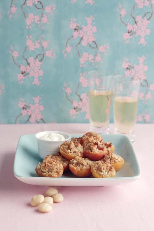 - Place the apricots cut side up in a baking tray lined with non-stick baking paper. Spoon a little of the macadamia mixture into the cavity of each apricot then sprinkle with a little cinnamon.