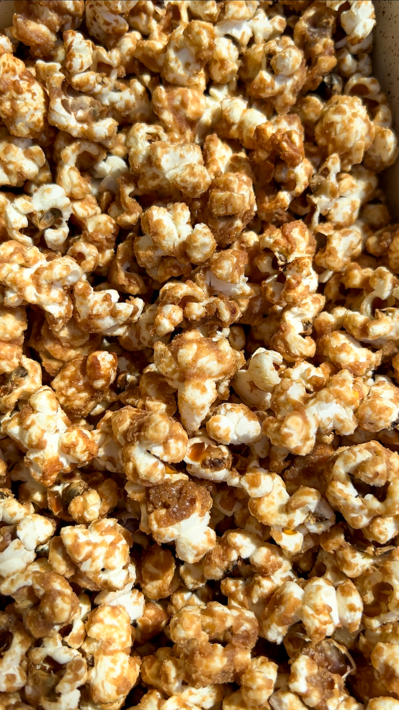 - Place cooked popcorn into a large glass bowl.