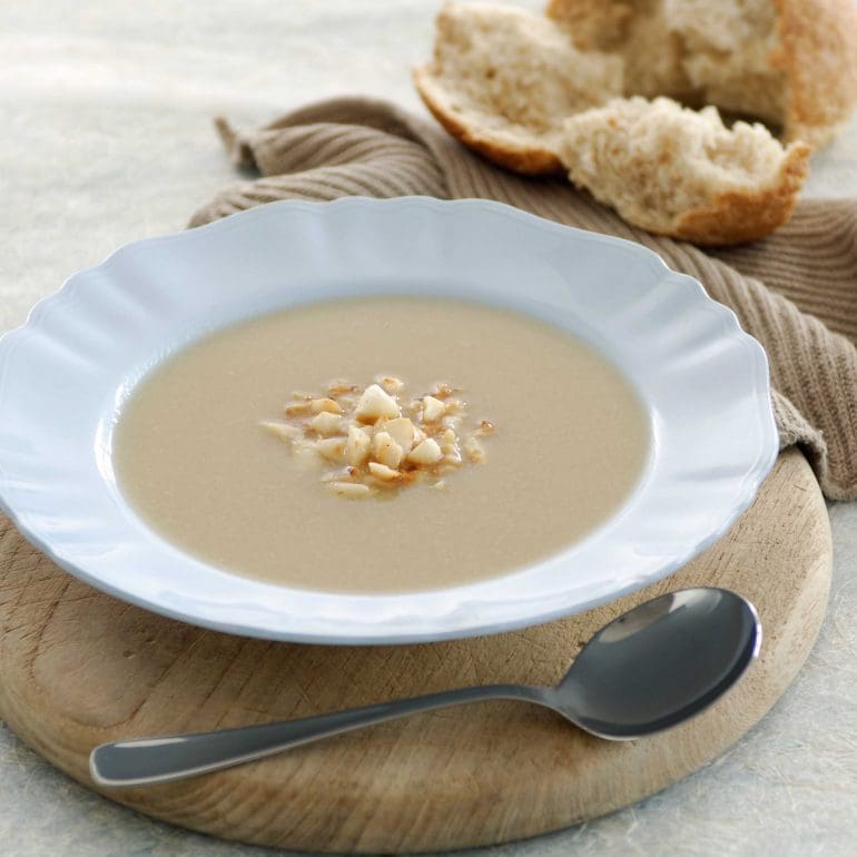 - Place cauliflower, stock, water, onion, garlic and fennel in a large saucepan over medium heat. Simmer for 20-25 minutes until very soft.