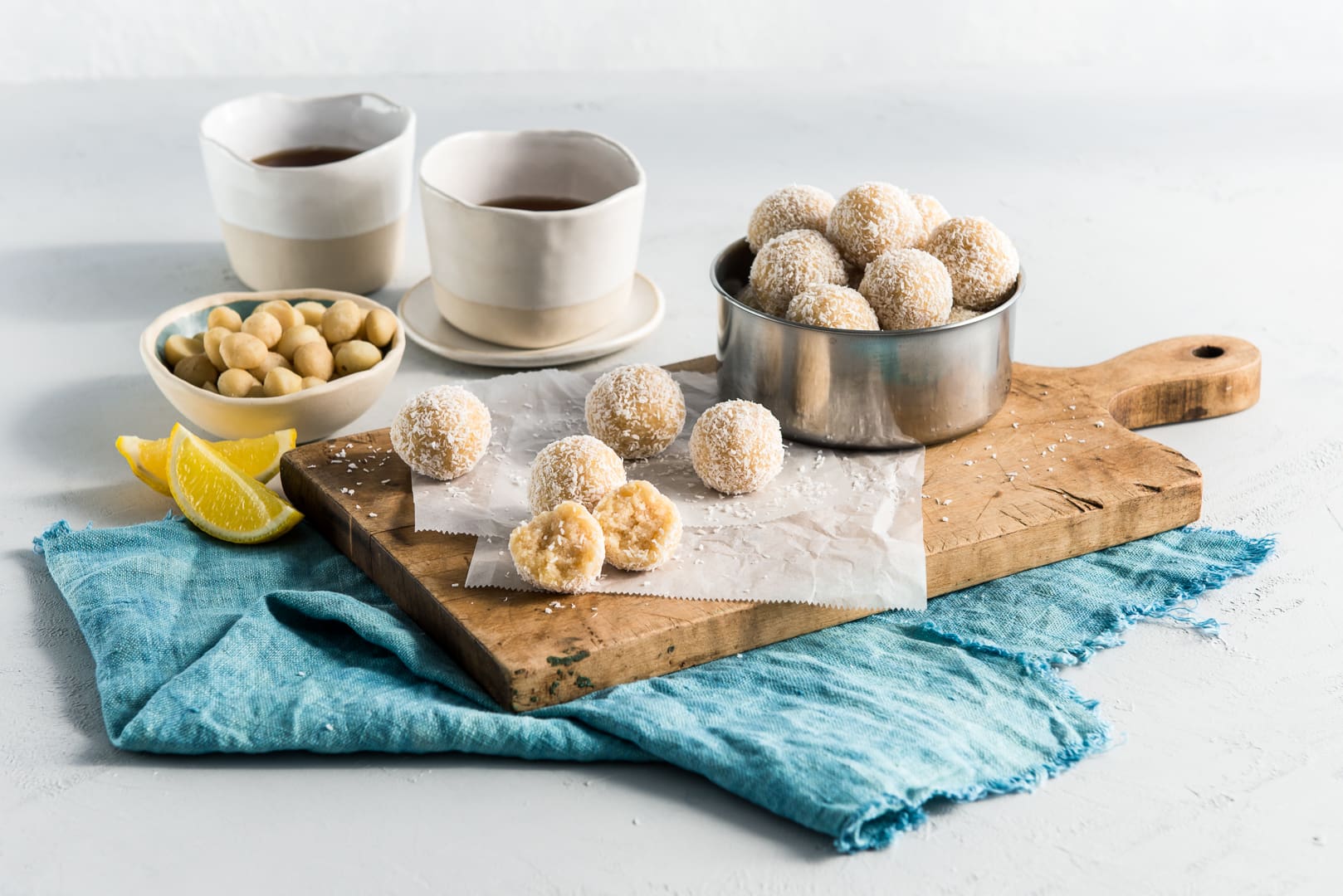 - In a food processor, blitz macadamias to a rough puree. Add lemon zest and 1 cup coconut, and pulse to combine.