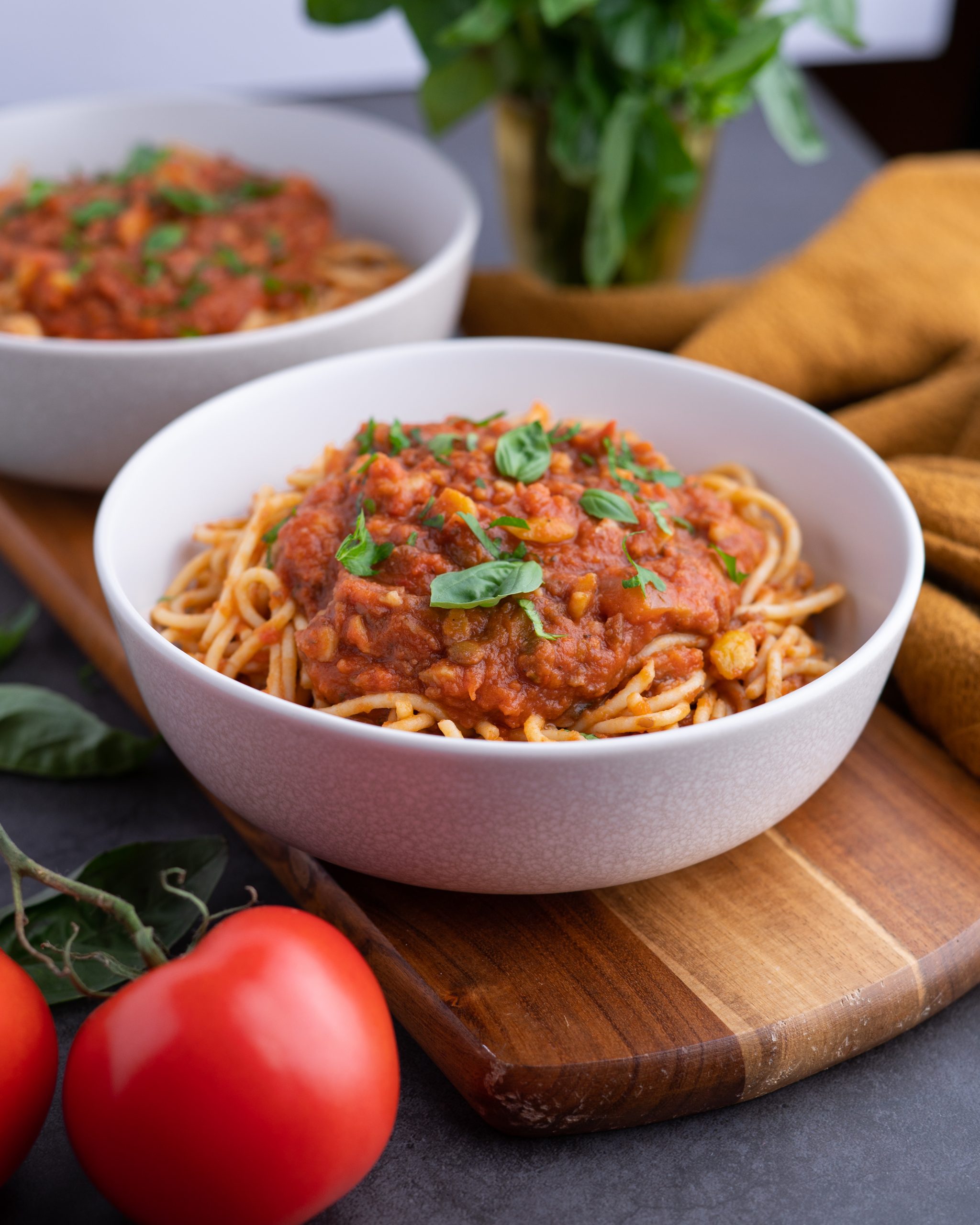 A plant-based alternative to traditional minced meat spaghetti sauce, made hearty with the rich flavour and texture of chestnuts.