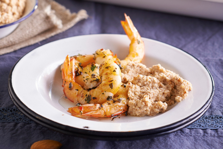 - Grill or barbecue the prawns. Serve prawns with skordalia and salad.