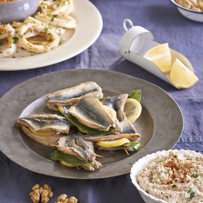 - Lay out 12 butterflied sardines on a board. Place a bay leaf and a slice of lemon on each one, then top with remaining sardines. Carefully secure each sardine ‘package’ with a toothpick.
