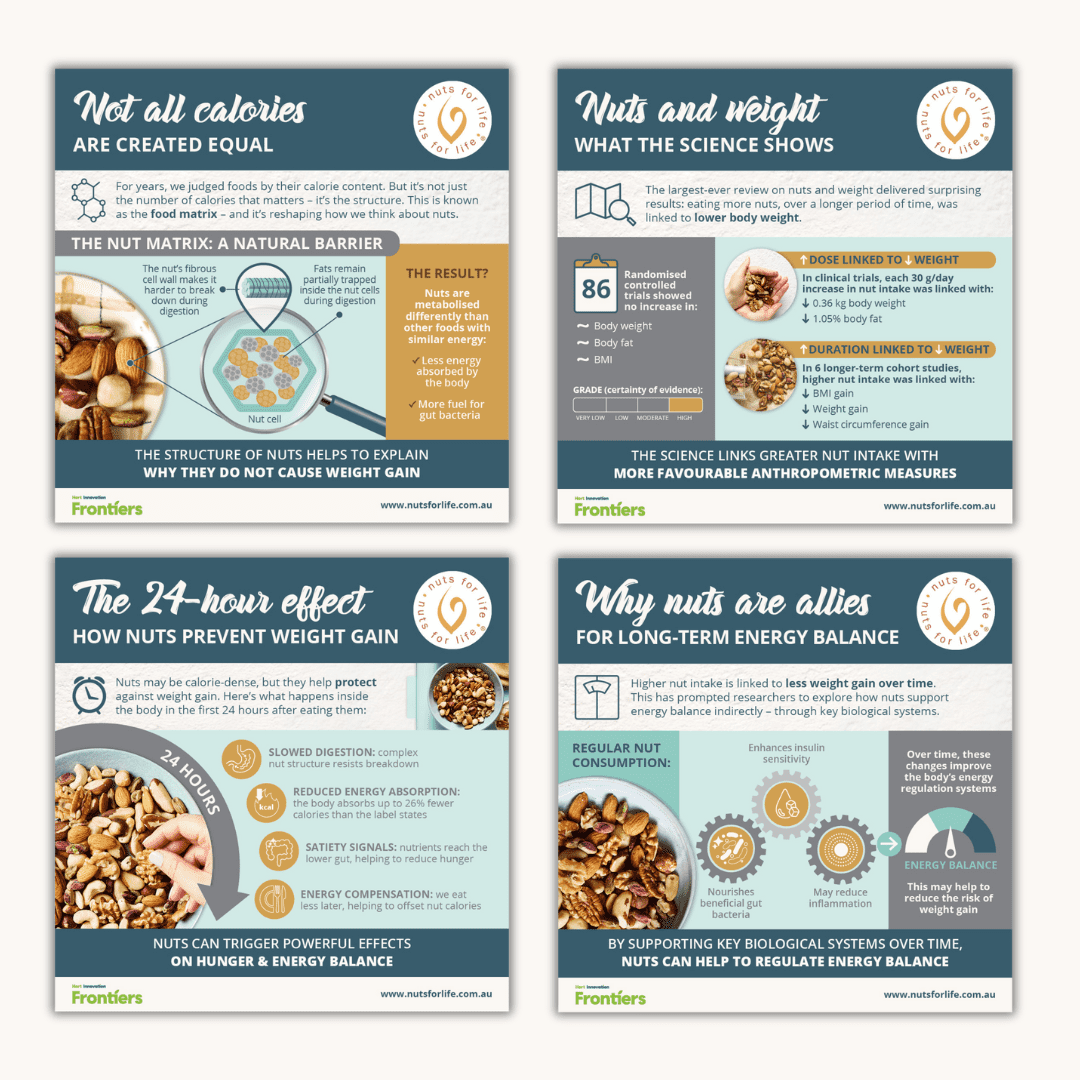 Health professionals can use this evidence to counter outdated ‘nut-calorie-weight’ concerns – recommending at least a handful of nuts a day, including for weight-conscious clients or patients.