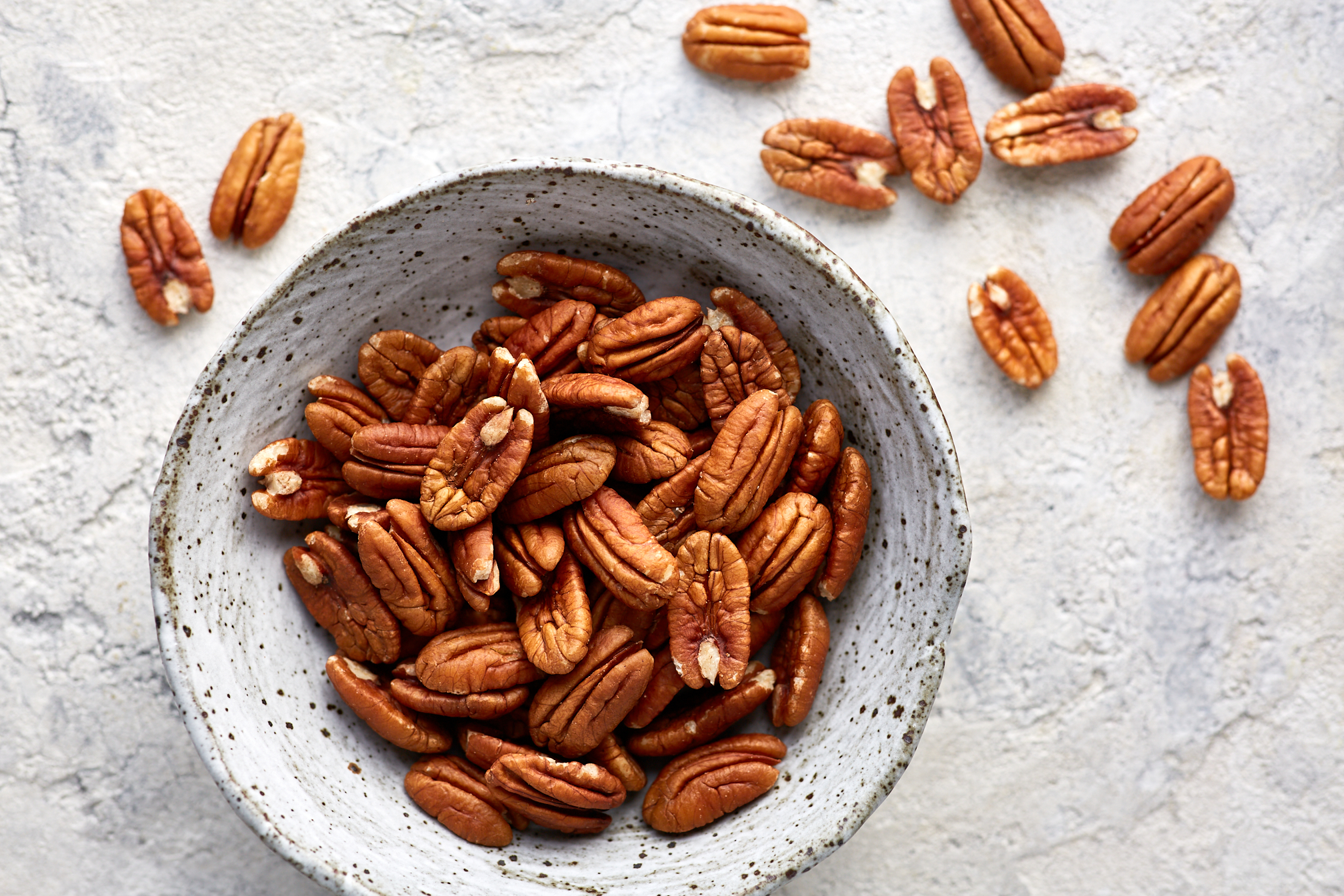 Replacing nutrient-poor snacks with two handfuls of pecans a day can improve diet quality and blood lipid measures, which may reduce the risk of cardiovascular disease in at-risk adults.